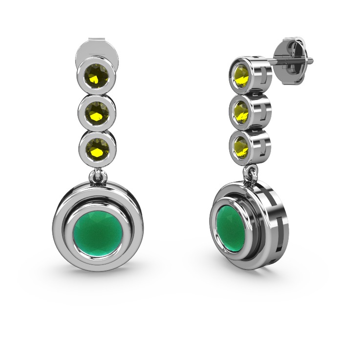 Peridot ve kök zümrüt 8 ayar beyaz altın küpe