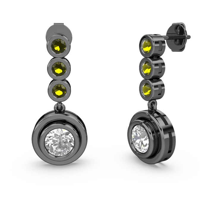 Peridot ve pırlanta 925 ayar siyah rodyum kaplama gümüş küpe (1.84 karat)