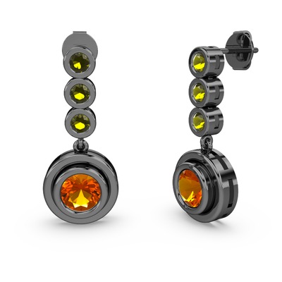 Peridot ve sitrin 925 ayar siyah rodyum kaplama gümüş küpe