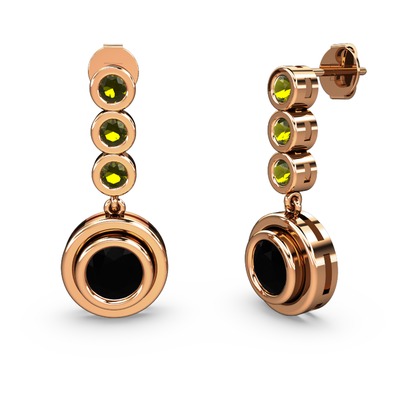 Peridot ve siyah zirkon 925 ayar rose altın kaplama gümüş küpe
