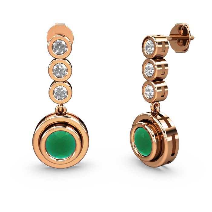 Pırlanta ve kök zümrüt 925 ayar rose altın kaplama gümüş küpe (0.66 karat)