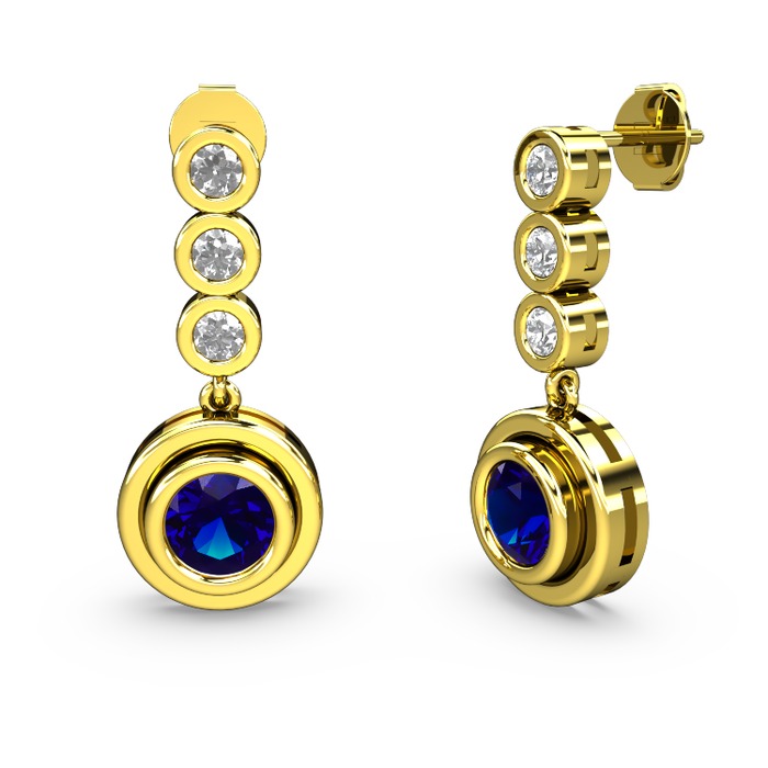 Pırlanta ve lab safir 14 ayar altın küpe (0.66 karat)