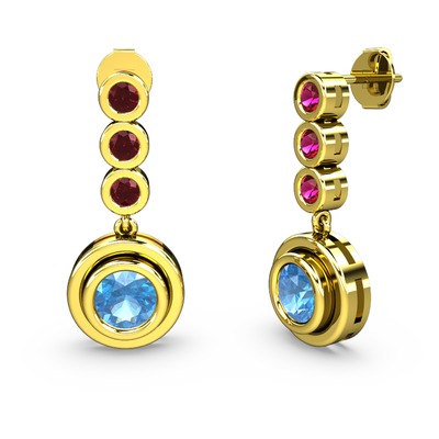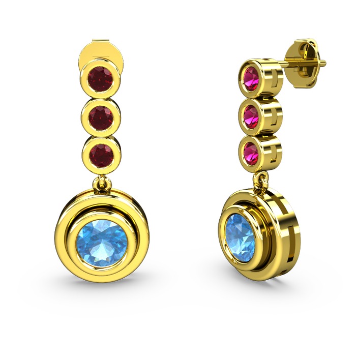 Rodolit garnet ve akuamarin 8 ayar altın küpe