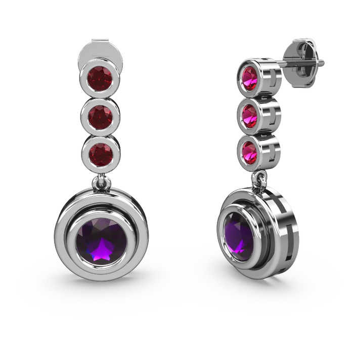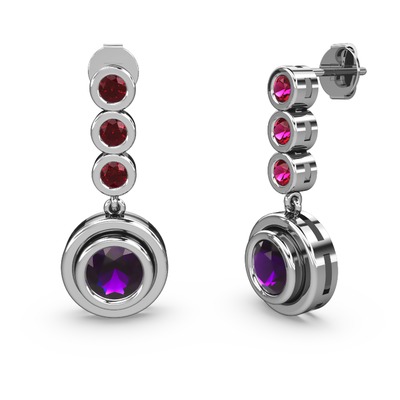 Rodolit garnet ve ametist 8 ayar beyaz altın küpe