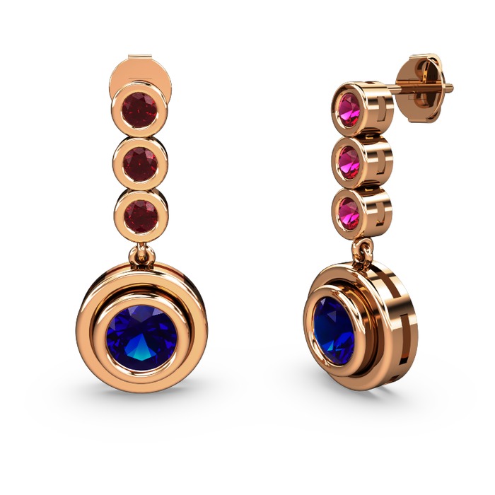 Rodolit garnet ve lab safir 14 ayar rose altın küpe
