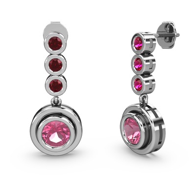 Rodolit garnet ve pembe kuvars 8 ayar beyaz altın küpe