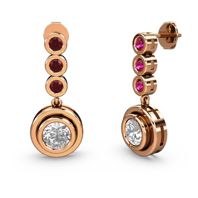 Rodolit garnet ve swarovski 14 ayar rose altın küpe