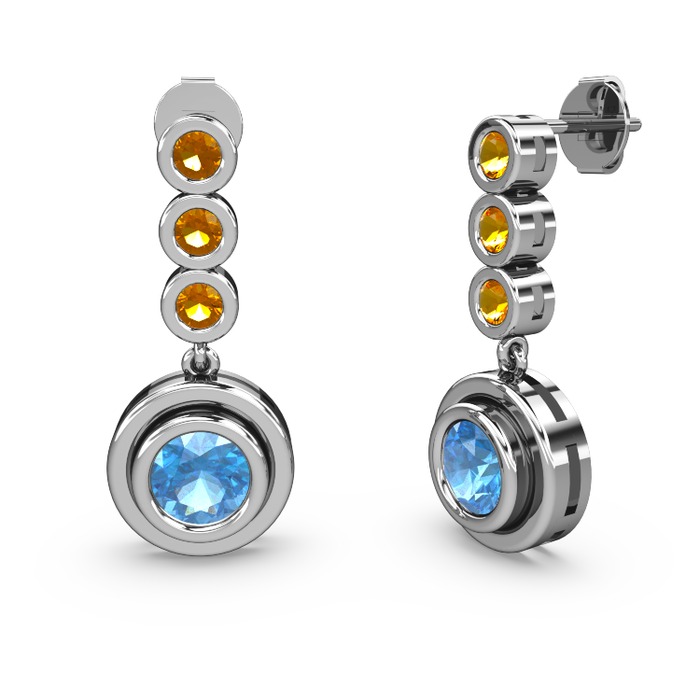 Sitrin ve akuamarin 18 ayar beyaz altın küpe
