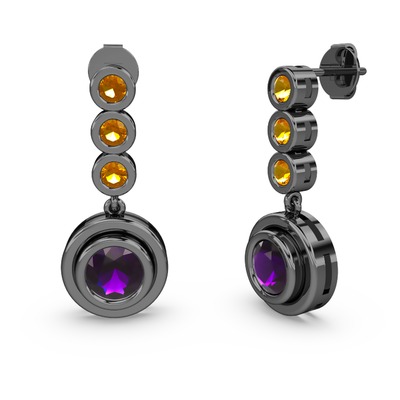 Sitrin ve ametist 925 ayar siyah rodyum kaplama gümüş küpe