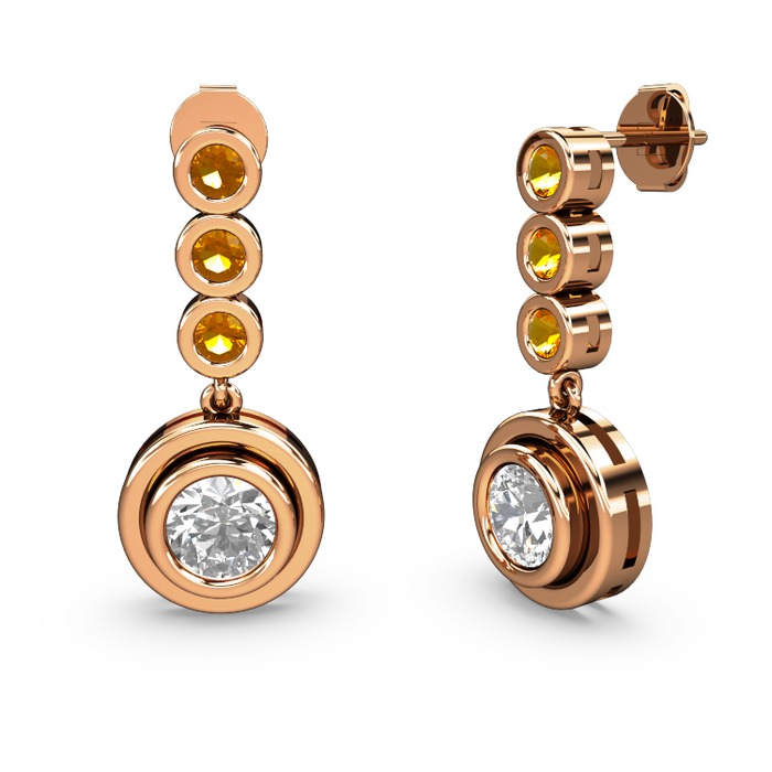 Sitrin ve beyaz zirkon 14 ayar rose altın küpe