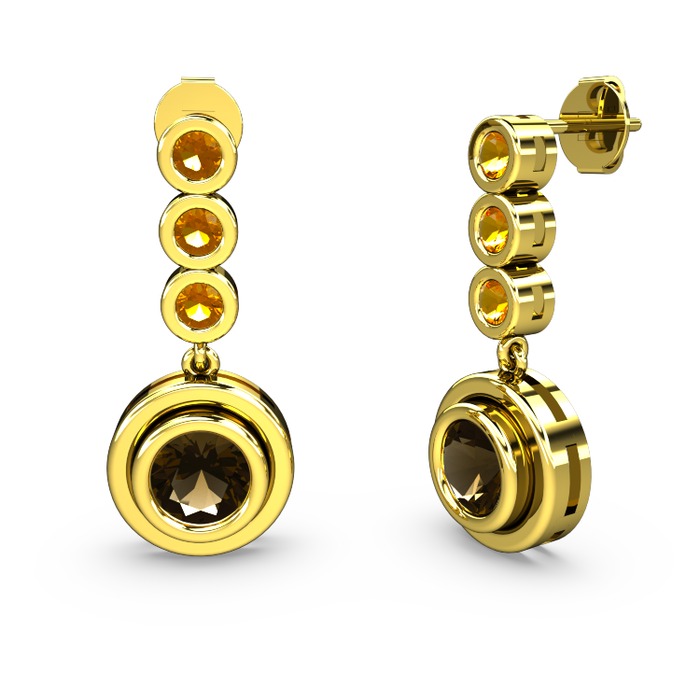 Sitrin ve dumanlı kuvars 8 ayar altın küpe