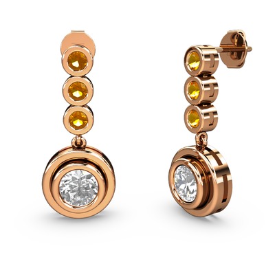 Sitrin ve elmas 925 ayar rose altın kaplama gümüş küpe (1.36 karat)