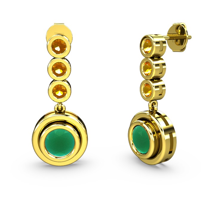 Sitrin ve kök zümrüt 8 ayar altın küpe