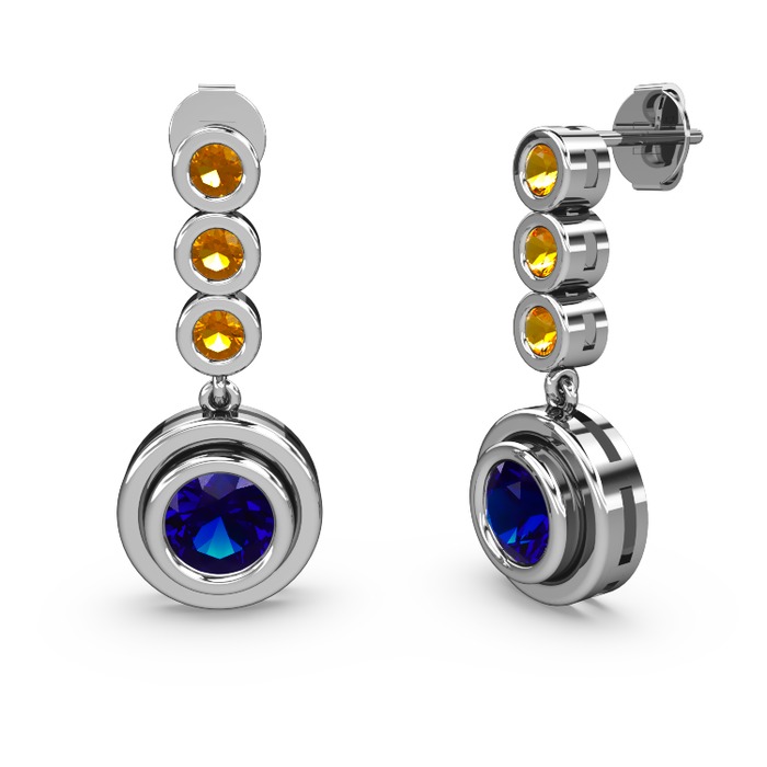 Sitrin ve lab safir 18 ayar beyaz altın küpe