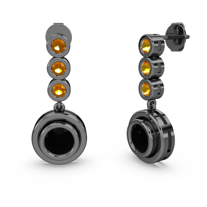 Sitrin ve siyah zirkon 925 ayar siyah rodyum kaplama gümüş küpe