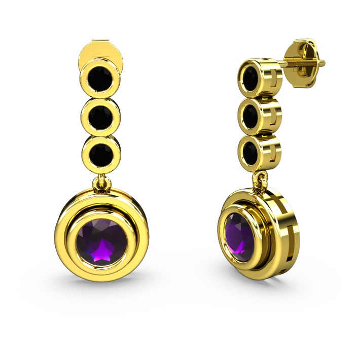 Siyah zirkon ve ametist 18 ayar altın küpe
