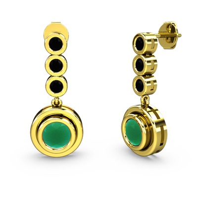 Siyah zirkon ve kök zümrüt 8 ayar altın küpe
