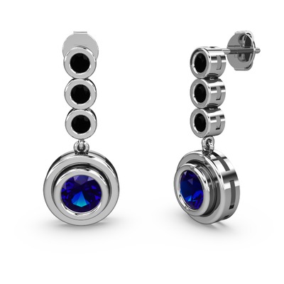 Siyah zirkon ve lab safir 8 ayar beyaz altın küpe