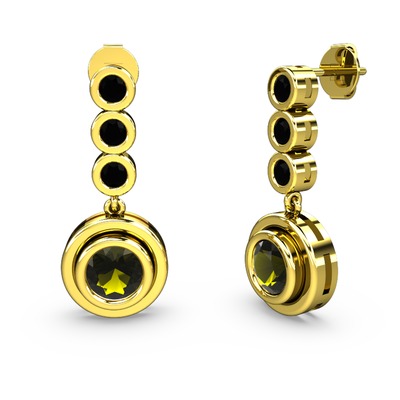Siyah zirkon ve peridot 925 ayar altın kaplama gümüş küpe