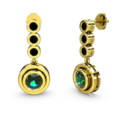 Siyah zirkon ve yeşil kuvars 14 ayar altın küpe