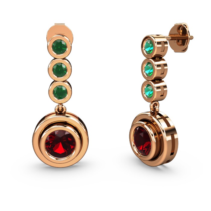 Yeşil kuvars ve garnet 8 ayar rose altın küpe