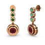 Yeşil kuvars ve kök yakut 14 ayar rose altın küpe