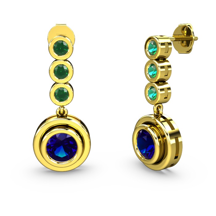 Yeşil kuvars ve lab safir 18 ayar altın küpe