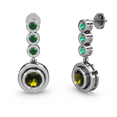 Yeşil kuvars ve peridot 8 ayar beyaz altın küpe