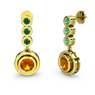 Yeşil kuvars ve sitrin 14 ayar altın küpe