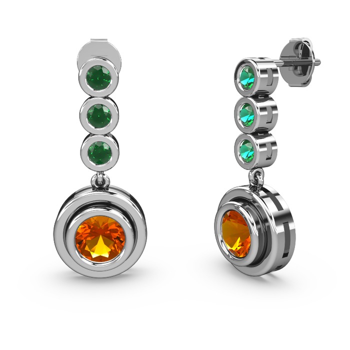 Yeşil kuvars ve sitrin 8 ayar beyaz altın küpe