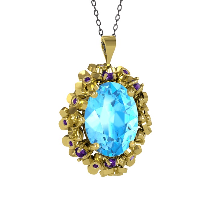 Akuamarin ve ametist 925 ayar altın kaplama gümüş kolye (40 cm gümüş rolo zincir)