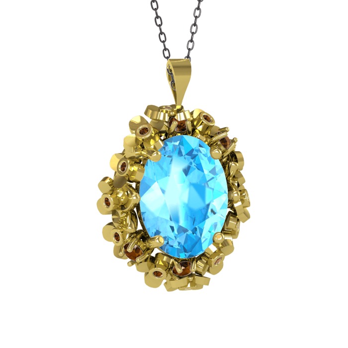 Akuamarin ve dumanlı kuvars 18 ayar altın kolye (40 cm gümüş rolo zincir)
