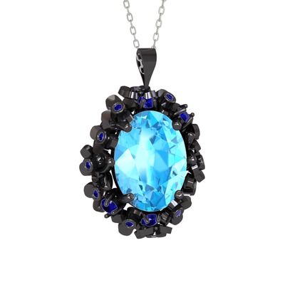 Akuamarin ve lab safir 925 ayar siyah rodyum kaplama gümüş kolye (40 cm beyaz altın rolo zincir)