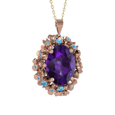 Ametist ve akuamarin 14 ayar rose altın kolye (40 cm altın rolo zincir)