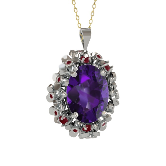 Ametist ve kök yakut 18 ayar beyaz altın kolye (40 cm altın rolo zincir)