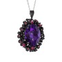 Ametist ve rodolit garnet 925 ayar siyah rodyum kaplama gümüş kolye (40 cm gümüş rolo zincir)