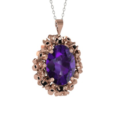 Ametist ve siyah zirkon 925 ayar rose altın kaplama gümüş kolye (40 cm beyaz altın rolo zincir)