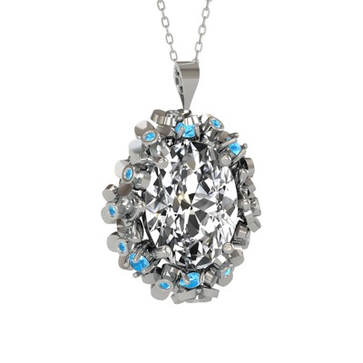 Beyaz zirkon ve akuamarin 8 ayar beyaz altın kolye (40 cm beyaz altın rolo zincir)