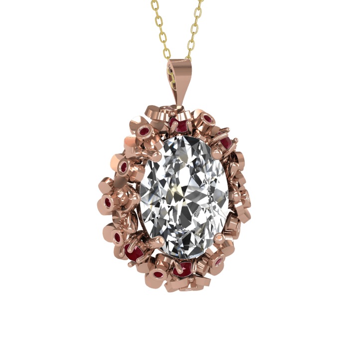 Beyaz zirkon ve kök yakut 8 ayar rose altın kolye (40 cm altın rolo zincir)
