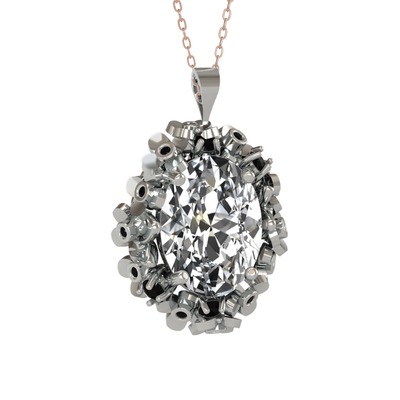 Beyaz zirkon ve siyah zirkon 925 ayar gümüş kolye (40 cm rose altın rolo zincir)
