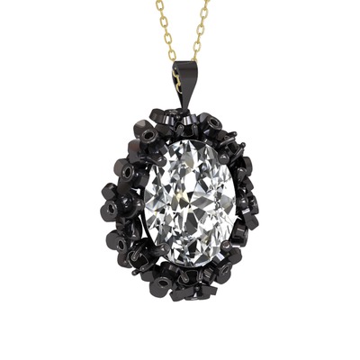 Beyaz zirkon ve siyah zirkon 925 ayar siyah rodyum kaplama gümüş kolye (40 cm altın rolo zincir)
