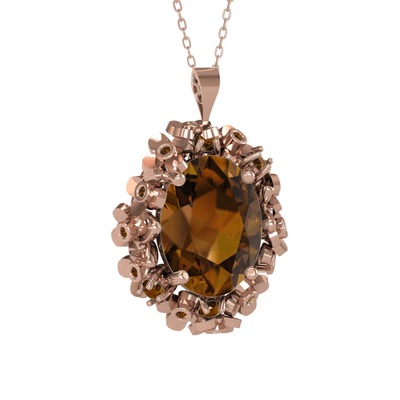 Dumanlı kuvars 14 ayar rose altın kolye (40 cm gümüş rolo zincir)