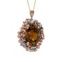 Dumanlı kuvars ve akuamarin 8 ayar rose altın kolye (40 cm gümüş rolo zincir)