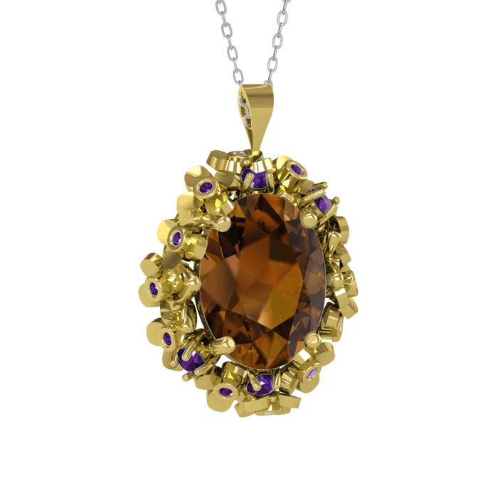 Dumanlı kuvars ve ametist 14 ayar altın kolye (40 cm beyaz altın rolo zincir)