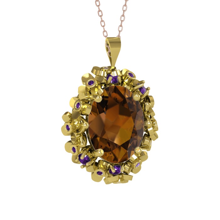 Dumanlı kuvars ve ametist 8 ayar altın kolye (40 cm rose altın rolo zincir)