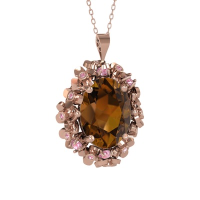 Dumanlı kuvars ve pembe kuvars 14 ayar rose altın kolye (40 cm rose altın rolo zincir)