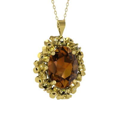 Dumanlı kuvars ve peridot 18 ayar altın kolye (40 cm altın rolo zincir)