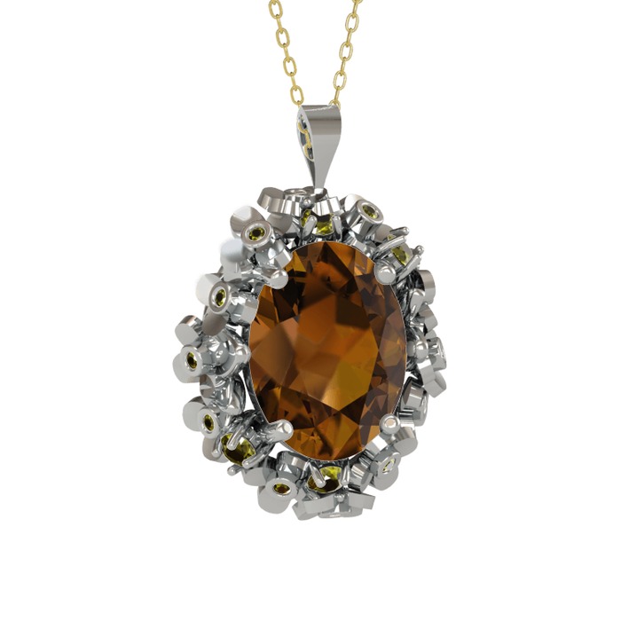 Dumanlı kuvars ve peridot 8 ayar beyaz altın kolye (40 cm altın rolo zincir)