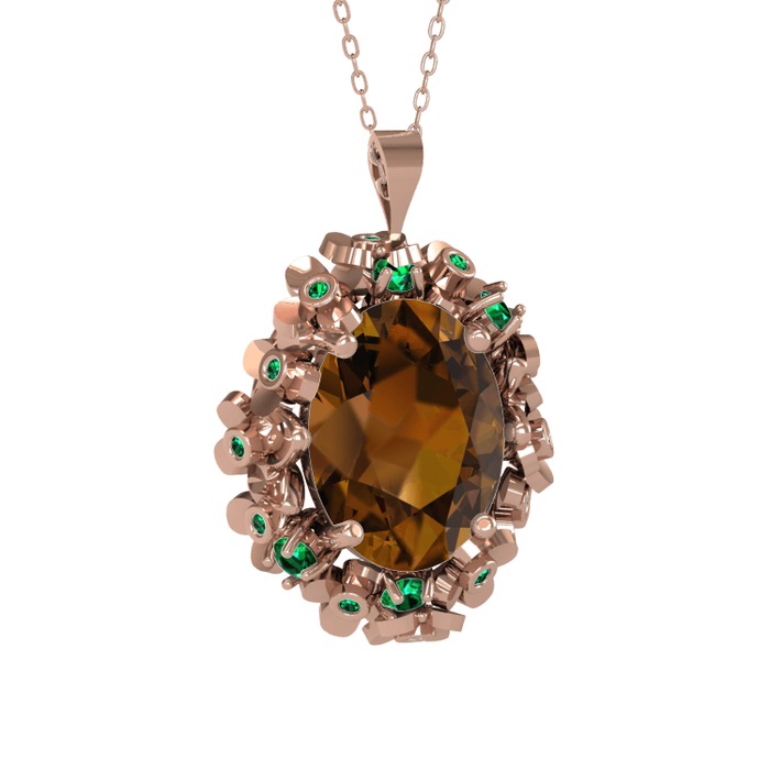 Dumanlı kuvars ve yeşil kuvars 14 ayar rose altın kolye (40 cm rose altın rolo zincir)