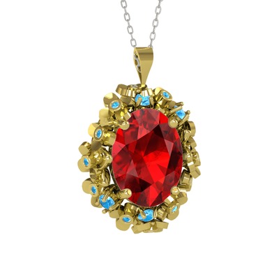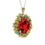 Garnet ve akuamarin 925 ayar altın kaplama gümüş kolye (40 cm gümüş rolo zincir)
